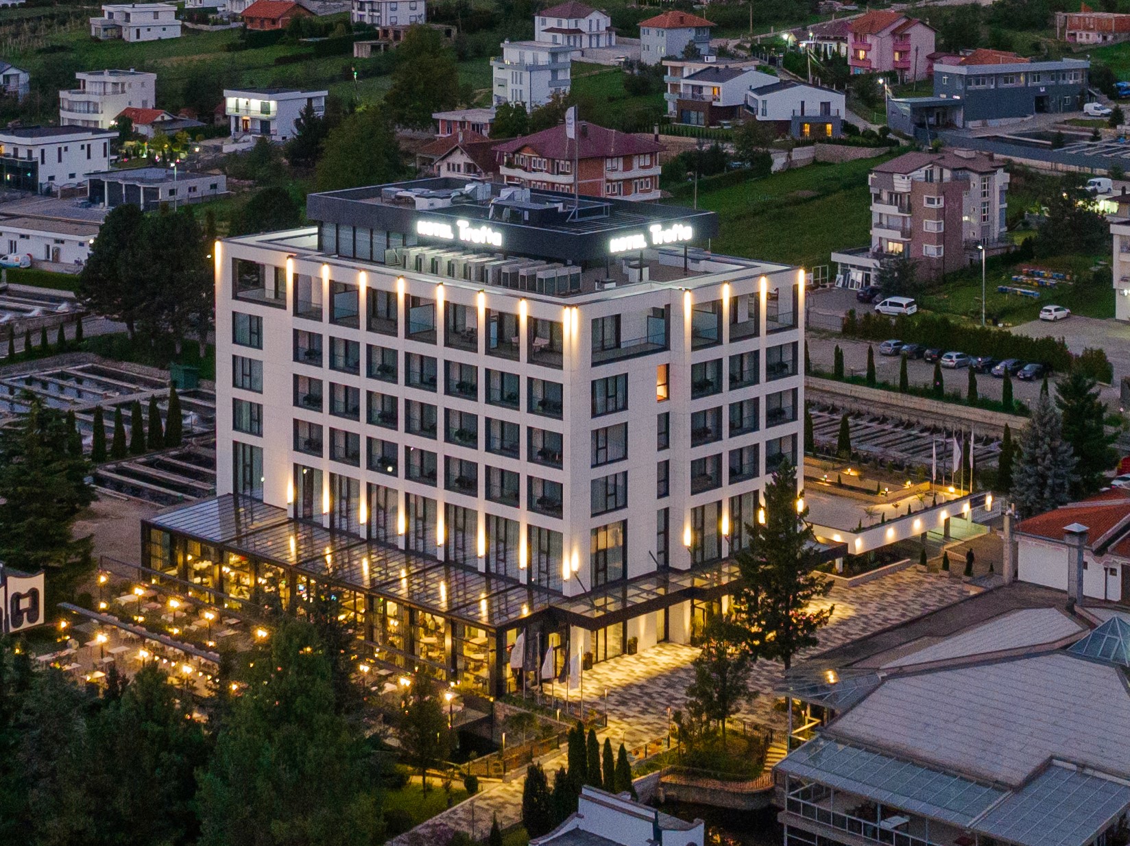 “Hotel Trofta” në Istog është hoteli që bën realitet ëndrrat tuaja. Është vendi që ju ka munguar. Me ambiente të pafundme qetësie dhe relaksi, hoteli ofron komoditet për secilën stinë të vitit. Projektuesi dhe mbikëqyrësi i gjithë këtij projekti gjigant është arkitekti shqiptar nga Vjena, Esat Bytyqi
