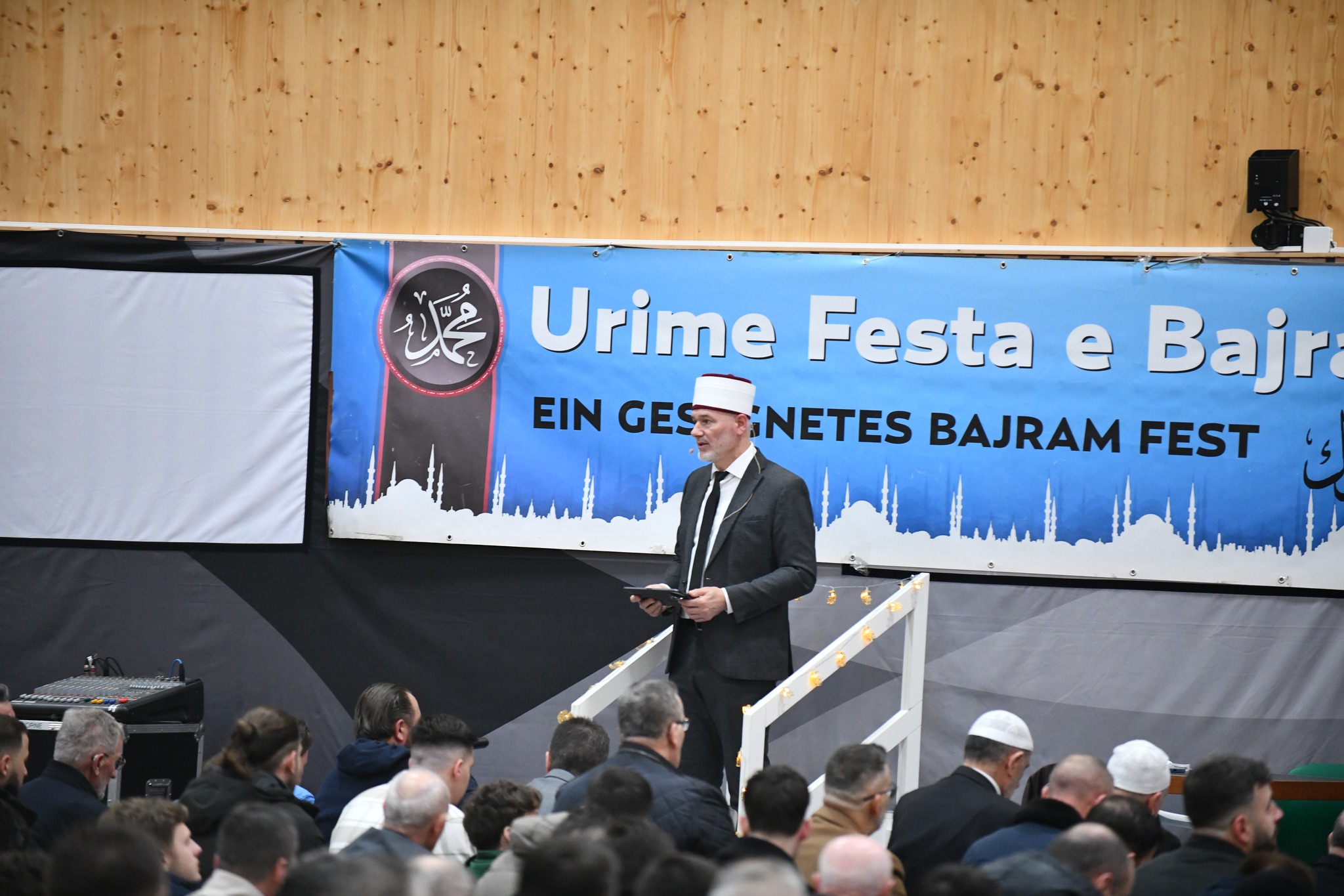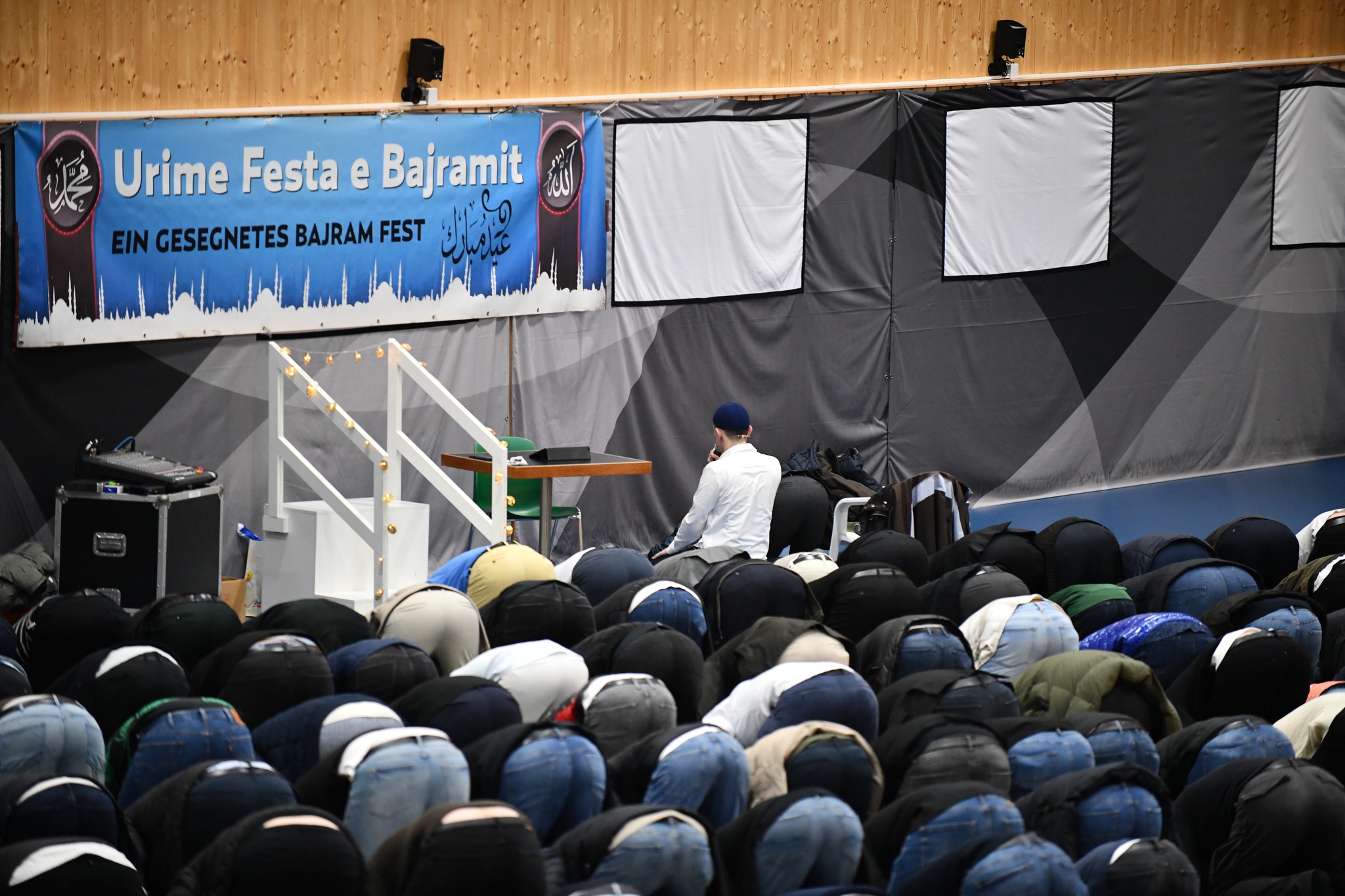 Në një sallë të mbushur plot, besimtarët shqiptarë u mblodhën në Kloten të Cyrihut për të falur namazin e Fitër Bajramit. Atmosfera ishte e ngrohtë dhe festive, duke reflektuar bashkimin dhe solidaritetin mes komunitetit, shkruan albinfo.ch.