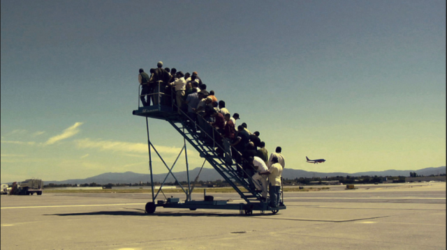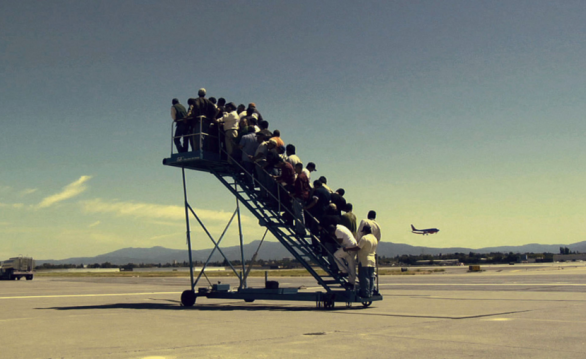 Në këtë video shihen njerëzit duke u shtyrë për të hipur në shkallët e aeroplanit. Por vetëm në fund ata shohin se aerolani nuk ndodhet askund dhe se shkallët qëndrojnë të vendosura në asgjë! A nuk e kalojmë ne të gjithë jetën në shkallë të tilla? Duke pritur, duke shpresuar, duke u shtyrë me bërryla, me kokë diku jetër, atje ku të pëlqen të jemi…», shkruan autorja e vështrimit të botuar në gazetë zvicerane