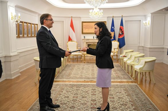 Presidentja e Republikës së Kosovës, Vjosa Osmani, pranoi letrat kredenciale nga ambasadori i ri i Austrisë, George Schnetzer, të cilin e ka uruar për detyrën dhe ka shfaqur shpresën se gjatë mandatit të tij marrëdhëniet bilaterale ndërmjet dy shteteve do të intensifikohen edhe më tej, thuhet në njoftimin e Presidencës.