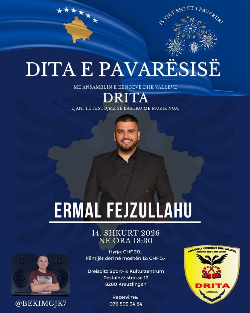 Komuniteti shqiptar në Zvicër do të shënojë 18-vjetorin e Pavarësisë së Kosovës me një aktivitet festiv që do të mbahet më 14 shkurt 2026 në Kreuzlingen, shkruan albinfo.ch.