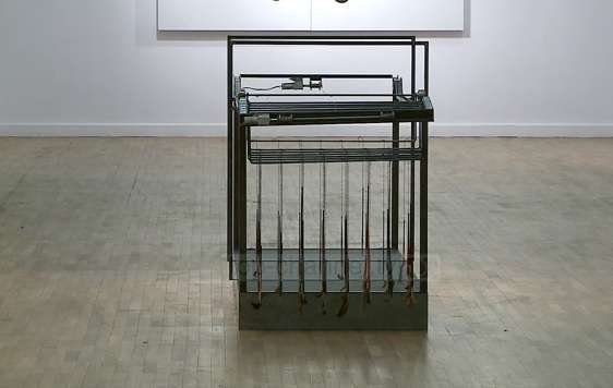 Artan Shabani ka thënë se instalacioni gjendet në hyrje të ekspozitës dhe është një shpikje e artistes, e cila përdor në vend të brushës së penelit, flokët e artistëve të famshëm bashkëkohorë.