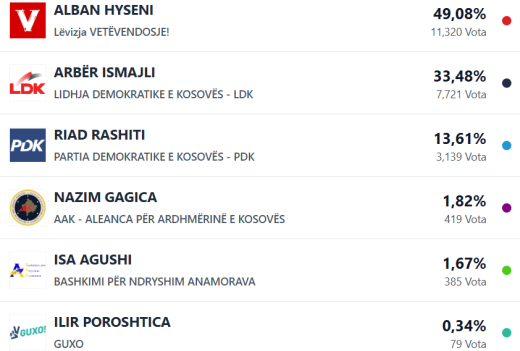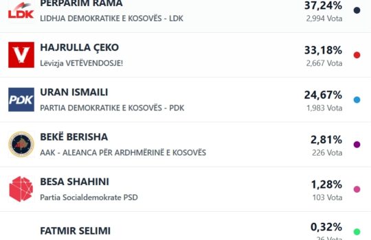 - Prishtinë: Rezultatet e para nga zgjedhjet lokaleSipas të dhënave të publikuara nga Komisioni Qendror i Zgjedhjeve (KQZ),...