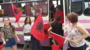Me flamuj kuq e zi, prindërit shqiptarë i presin fëmijët e tyre në fshatin ukrainas