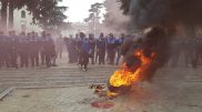 Protestuesit djegin goma para Parlamentit shqiptar