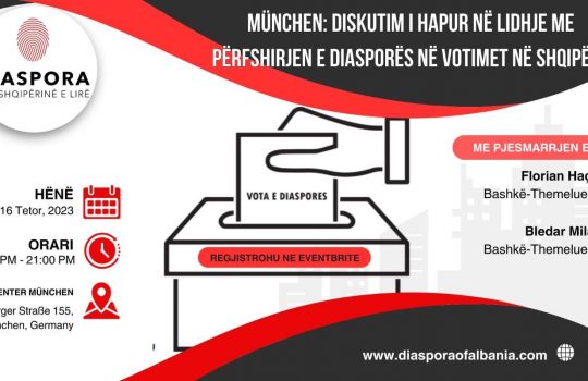 - Diskutim rreth përfshirjes së diasporës në votime në ShqipëriDiaspora për Shqipërinë e Lirë (DPSHL) ka kënaqësinë t’ju ftojë në...