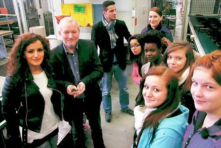 Në foton më lartë ajo shihet në mesin e adhurueseve të saj dhe një sponsori të klubit të Frankfurtit, gjatë vizitës që i ka bërë ndërmarrjes së tij.