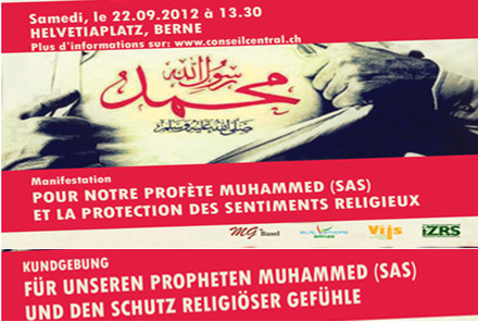 “Për Pejgamberin tonë Muhamet dhe mbrojtjen e ndjenjave fetare”, shkruhet në fletushkën zyrtare të manifestimit, të cilën e kanë vulosur Këshilli Qendror Islamik i Zvicrës (KQIZ) si dhe dy organizata të tjera myslimane. “Unë nuk jam pjesë e komitetit organizues”, paralajmëron menjëherë Nicolas Blancho, president i KQIZ-së, “por unë mendoj se kjo është një arsye emirë”.