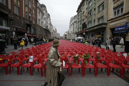 Në qendër të Sarajevës janë vendosur 11,541 karrige, aq sa edhe numri zyrtar i sarajevasve të vrarë gjatë luftës.