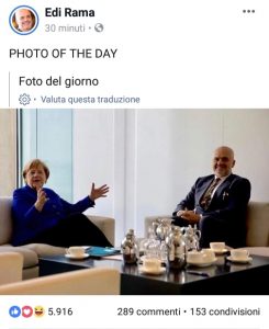 Edhe kryeministri Rama ka postuar një foto nga takimi me kancelaren Merkel, të cilën e ka cilësuar si “Foto e ditës”.