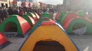 Opozita ka ndërtuar disa tenda në sheshin “Skënderbeu” në Prishtinë, ku...