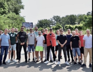 Një grup i tifozëve të Drenicës ‘Shqiponjat e Zeza’, të shoqëruar...