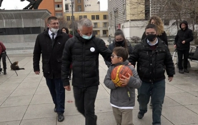 Një fëmijë me sindromën Down ka gjuajtur një top në oborrin...