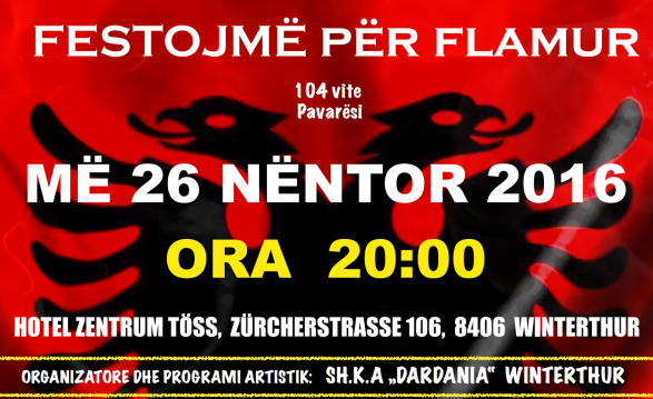 Nën organizimin dhe mbarëvajtjen e SH.K.A “Dardania” nga Winterthuri, si gjithënjë edhe këtë vit organizohet festa e Flamurit dhe Pavarësisë së Shqipërisë.