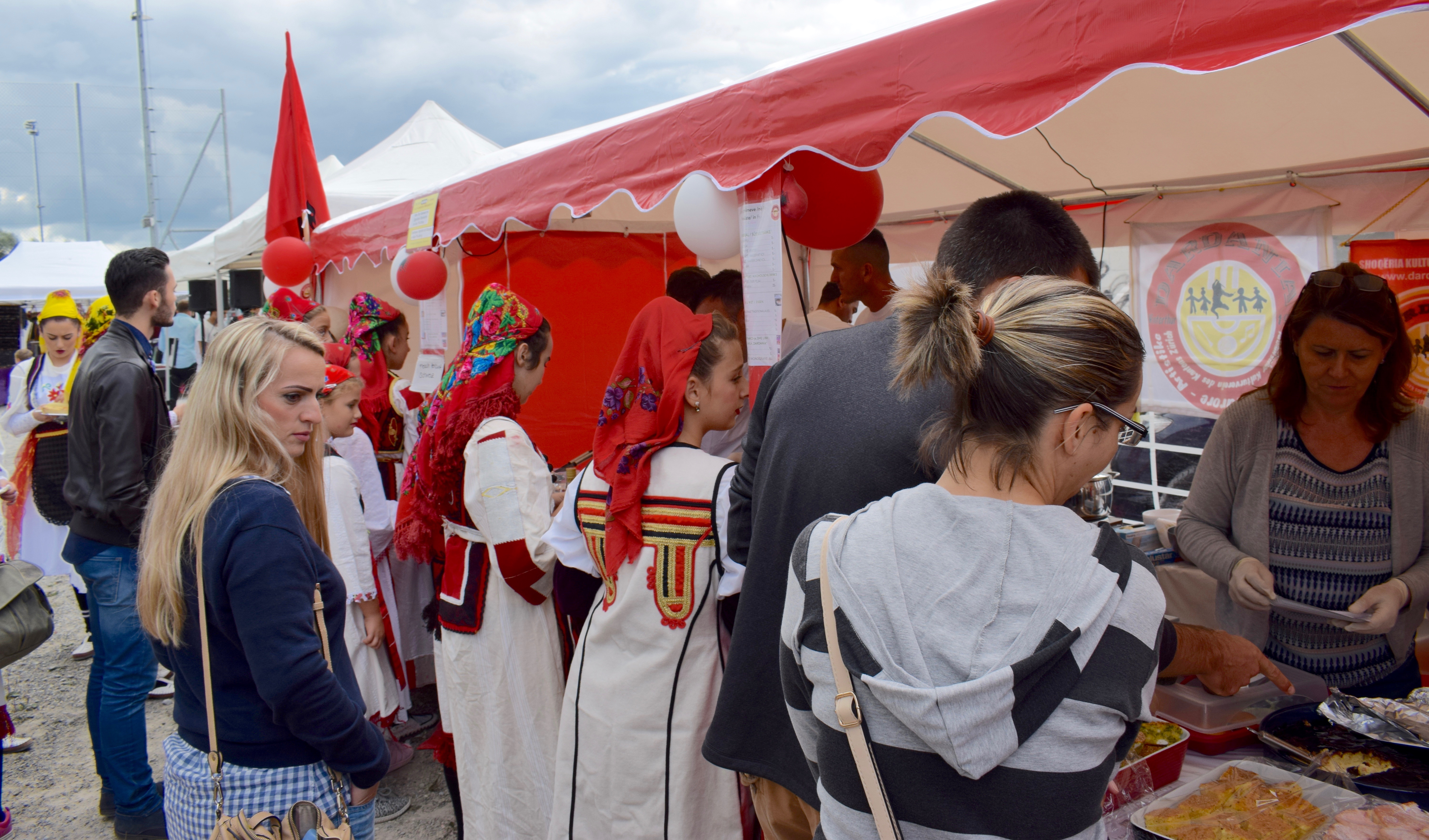 Tenda e Shoqërisë Kulturore dhe Artistike „Dardania“ dallohej nga larg me pamjen e saj dhe dekorimin e bukur, e stolisur me flamurin kombëtar dhe atë të shoqërisë. Aty ishin pastaj edhe dy veshje kombëtare që simbolizonin traditën tonë, mandej në tavolinën e gjatë ishin radhitur ushqimet tona më tradicionale, si; flijat, pitet e ndryshme, djathë sharri, pak më tutje piqej edhe mishi në skarë, fasulja (grosha) krelana e misrit, dhe ëmbëlsira të ndryshme