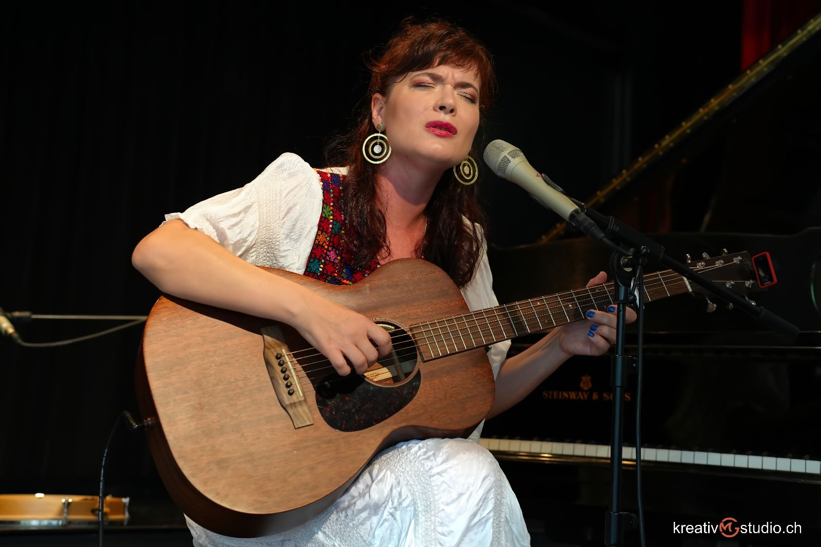 Im Anschluss folgten mehrere musikalische Darbietungen. Zuerst präsentierte Olviia Tsymbaliuk (Gesang, Bandura) in Begleitung von Tetyana Mykhalynyuk (Klavier) zwei traditionelle ukrainische Lieder. Nun kamen die Gäste in den Genuss einer grossartigen Darbietung von Elina Duni, einer preisgekrönten albanisch-schweizerischen Sängerin und Musikerin, die sich zwischen Jazz, Pop und traditionellen Liedern aus Albanien, dem Kosovo, der Schweiz und weiteren internationalen Einflüssen bewegt.