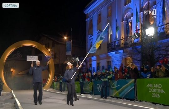 Das Team des Kosovo ist bei der Eröffnungsfeier der Olympischen Winterspiele Milano Cortina 2026 einmarschiert