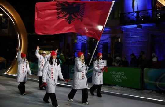 Das olympische Team Albaniens marschiert bei Milano Cortina 2026 ein
