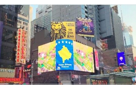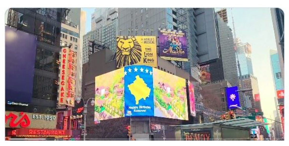 Die Flagge des Kosovo erleuchtet Times Square zum 18. Jahrestag der Unabhängigkeit