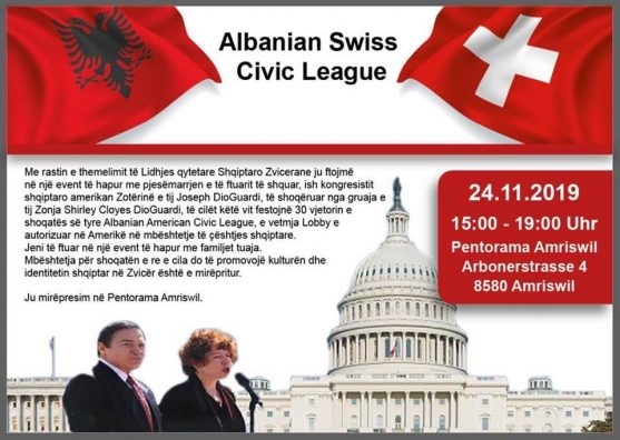 Me rastin e themelimit të Lidhjes qytetare shqiptaro-zvicarane, ku pjesëmarrës do të jetë ish-kongresisti shqiptaro-amerikan Joseph DioGuardi dhe gruaja e tij, Shirley Cloyes DioGuardi, të cilët këtë vit festojnë 30-vjetorin e shoqatës së tyre Albanian American Civic League, e vetmja Lobbz e autorizuar në Amerikë në mbështetje të çështjes shqiptare, përcjell albinfo.ch.