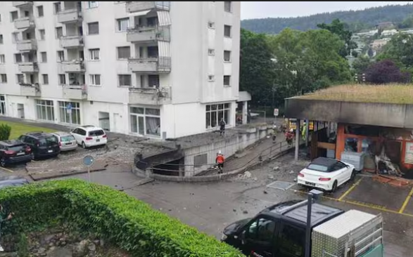 Fotot e publikuara në mediat zvicerane tregojnë tymin që ngrihet nga hyrja e parkimit nëntokësor dhe rrënojat e shtrira përreth.