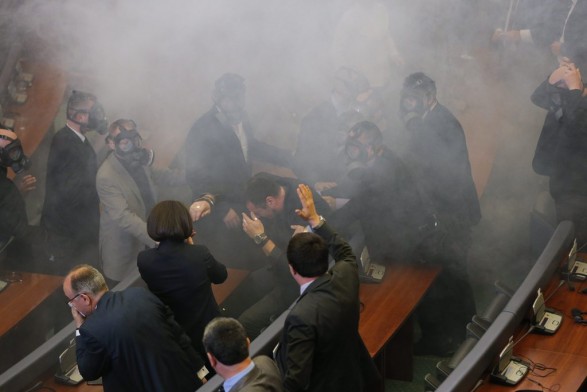 Re të gazit lotsjellës në Parlament. Deputetë me gazmaska. Sulme të demonstruesve në qendër të kryeqytetit Prishtinës, policë, që nxjerrin me dhunë deputetët e opozitës nga salla. Këto pamje janë bërë qe disa muaj përditshmëria e jetës politike në Kosovë. Por tash në Parlamentin e rrethuar me tela xhemborë dhe të modernizuar pas Luftës për Pavarësi më 1988/89 ështëk thyer qetësia.
