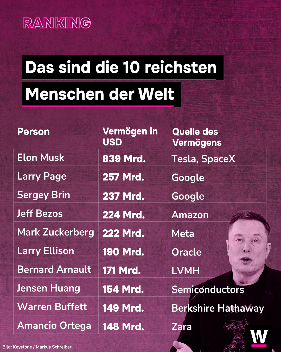 Njeriu më i pasur në planet është Elon Musk, që zotëron Tesla dhe SpaceX me 829 miliardë dollarë, derisa Jeff Bezos ka rënë në pozitën e katërt.