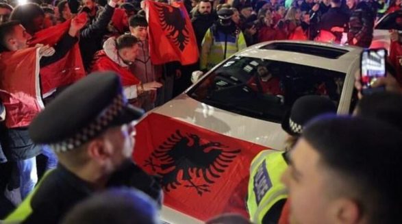 Rrugët rreth Westminister janë bllokuar nga veturat dhe qytetarët e shumtë që mbajnë flamuj shqiptarë, ndërsa janë ndezur edhe fishekzjarre, shkruan “Dialy Mail”.