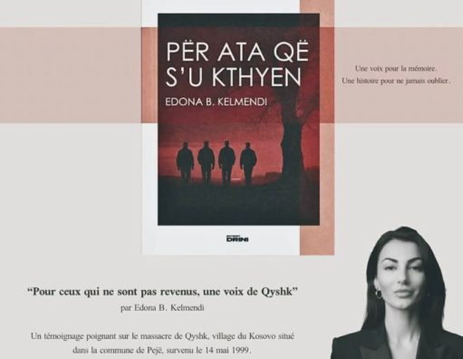 Il s’agit de la présentation du livre « Për ata që s’u kthyen » (Pour ceux qui ne sont pas revenus), de l’auteure Edona B. Kelmendi, une œuvre poignante qui apporte un témoignage fort sur la guerre au Kosovo.