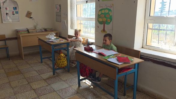 Sot, e njëjta shkollë ka dyer dhe dritare të thyera, muret të çara dhe pa xhama. Në vend të nxënësve, bagëtitë kanë zënë oborrin. Në një klasë të vetme, pesë fëmijë përpiqen të mësojnë, të rrethuar nga heshtja që rëndon mbi çdo bankë bosh.