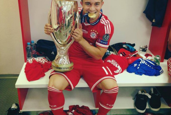 Superylli shqiptar i Bayern të Munihut, Xherdan Shaqiri, është shfaqur pas ndeshjes me Chelsean me superkupën në dorë, duke iu gëzuar fitores së ekipit gjerman.