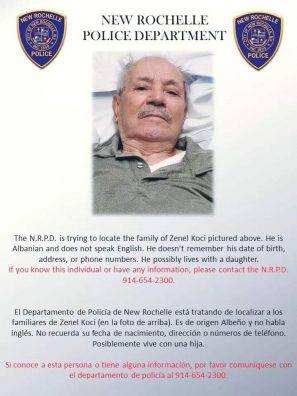 “Po mundohemi ta gjejmë lokacioni e familjes së Zenel Kocit. Ai është shqiptar, por nuk flet anglisht. Ai nuk mban mend datën e tij të lindjes, adresën dhe numrin e telefonit. Ai jeton me vajzën e tij”, thuhet në njoftim.