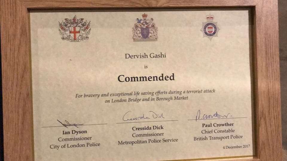 Ai kishte arritur të shpëtonte qindra qytetarë në restorantin ku punonte në kohën e sulmeve terroriste në kryeqytetin britanik në qershor. Në qershor në Londër ndodhën disa sulme, ndërsa Gashi u nderua për heroizmin në London Bridge.