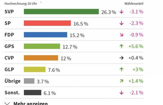- Fitore bindëse e të gjelbërve, humbje për SVP-në dhe SP-nëNë orën 16.00 në SRF janë dhënë rezultatet paraprake të zgjedhjeve...
