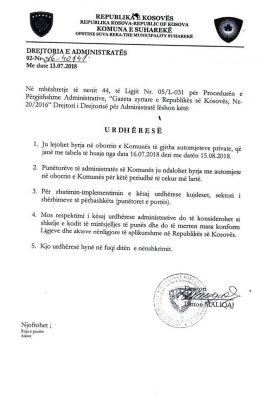 “Punëtorëve të administratës së Komunës ju ndalohet hyrja me automjete në oborrin e komunës për këtë periudhë të cekur më lartë”, thuhet në urdhëresë.