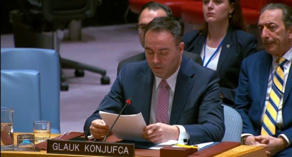 Zëvendëskryeministri i parë dhe Ministri i Punëve të Jashtme dhe Diasporës i Kosovës, Glauk Konjufca, ka mbajtur një fjalim në mbledhjen e 10132-të të Këshillit të Sigurimit të Kombeve të Bashkuara, ku ka paraqitur qëndrimet e Kosovës për zhvillimet politike, sigurinë dhe marrëdhëniet me Serbinë.
