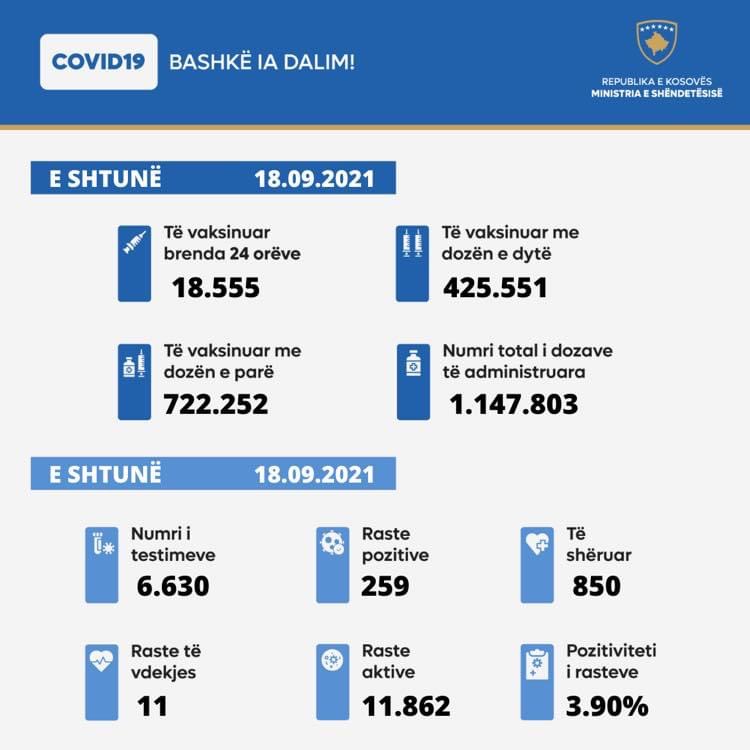 11 të vdekur dhe 259 raste të reja me koronavirus në Kosovë