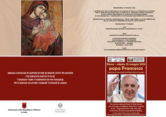 Javën që vjen në Romë do të organizohen takime, kremtime e programe kushtuar jubileut të 100-vjetorit të themelimit të Eparkisë (dioqezës) arbëreshe të Ungrës, themeluar me Kushtetutën Apostolike “Catholici fideles” të Papës Benedikti XV, më 13 shkurt 1919.