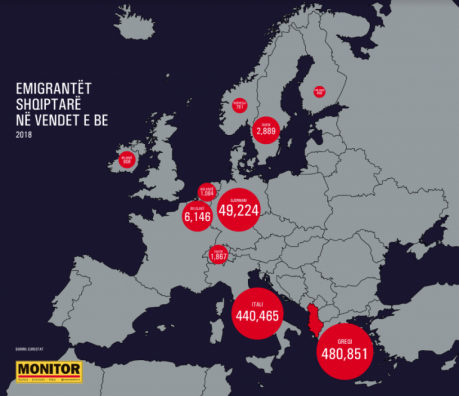 Emigrantët shqiptarë kanë një peshë të konsiderueshme edhe në Greqi, por të dhënat nuk janë përditësuar që prej 2011-s, ku numëroheshin rreth 480 mijë emigrantë shqiptarë atje. Sipas Eurostat për vitin 2018 numri i emigrantëve në Greqi ishte 604 mijë, ku pjesa më e madhe janë shqiptarë, transmeton ‘monitor’.