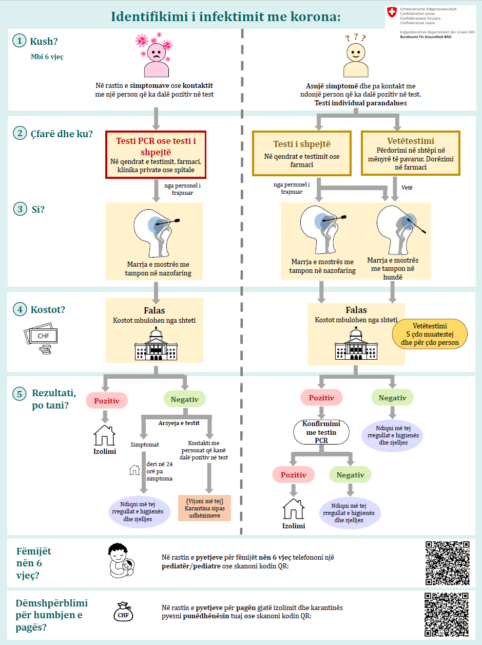 Tani më mund të përfitoni edhe nga një përmbledhje e thjeshtë, në 23 gjuhë, e cila lehtëson përzgjedhjen e llojit të saktë të testeve të koronavirusit dhe që duhet të inkurajojë të gjithë që të testojnë veten rregullisht. Kur, ku dhe si duhet të testohemi dhe kush paguan për kostot!