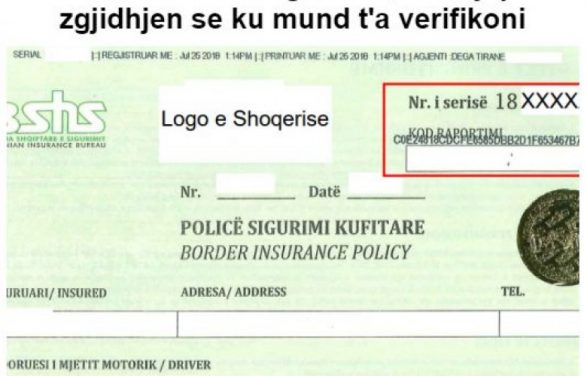 Numri i serisë së policës është unik dhe duhet të fillojë me dy shifrat e fundit të vitit aktual. (Shembull: Viti 2018 = 18xxxxxxx).