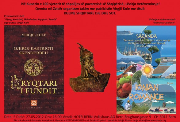 Në kuadrin e 100 vjetorit të shpalljes së pavarësisë së Shqipërisë, Qendra e Lëvizjes VETËVENDOSJE! në Zvicër ju fton në organizimin e takimit me publicistin Virgjil Kule me titullin : « KULME SHQIPTARE DJE DHE SOT »