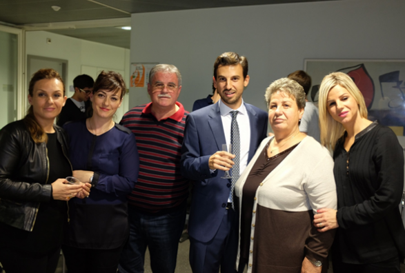Pastaj profesorë, studentë e miq së bashku kaluan në holin e ndërtesës së Universitetit, ku me një aperitiv të organizuar nga familjarët e z. Reka ndanë gëzimin e tyre për këtë ngjarje me dobi të përgjithshme.