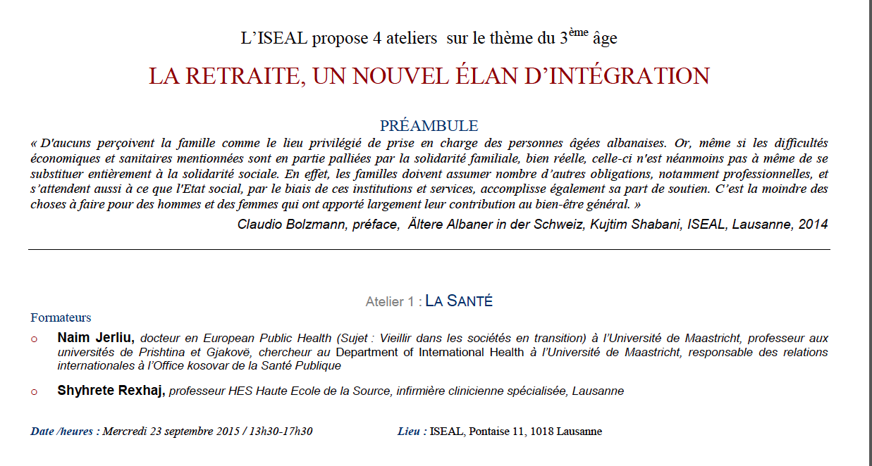 L’ISEAL propose 4 ateliers sur le thème du 3ème âge