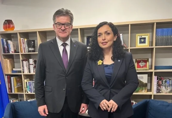 “Para se të kthehem në Bruksel, takova presidenten e Kosovës, Vjosa Osmani, për të diskutuar situatën aktuale në procesin e normalizimit. Vlerësova mendimet dhe rekomandimet e saj për mënyrën se si të zbatohet Marrëveshja e Ohrit”, ka shkruar ai në platformën X.