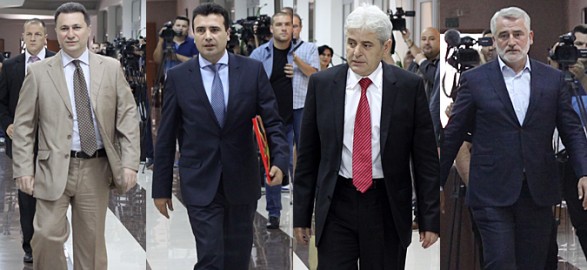 Katër partitë më të mëdha politike në Maqedoni, dy maqedonase dhe dy shqiptare, janë marrë vesh për themelimin e një qeveria kalimtare deri në zgjedhjet e parakohshme parlamentare të caktuar për 24 prill 2016. Në qeveri do të jenë, dy partnerët e koalicionit VMRO e kryeministrit Nikolla Gruevski, BDI e Ali Ahmetit, si dhe dy partitë opozitare, LSDM e Zoran Zaevit dhe PDSH e Menduh Thaçit.
