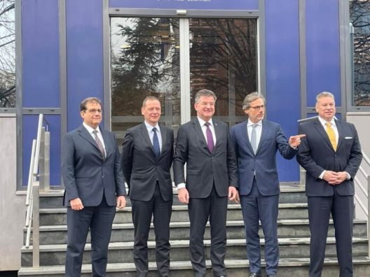 Delegacioni i pesëshes ndërkombëtare, i përbërë nga emisari special i ShBA-së për Ballkanin Perëndimor, Gabriel Esobar, i dërguari special i BE-së për dialogun Kosovë-Serbi, Miroslav Lajçak, këshilltari për politikë të jashtme dhe siguri i Gjermanisë, Jens Plettner, ai i Francës, Emmanuel Bonne dhe këshilltari për politikë të jashtme dhe siguri të kryeministrit të Italisë, Francesco Talo vazhdojnë të jenë në zyrën e kryeministrit Kurti, në takimin që ka nisur rreth dy orë më parë.