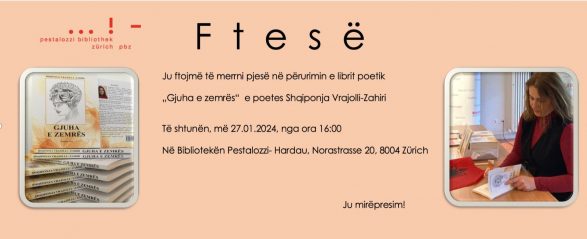 Libri poetik i autores Shqiponja Vrajolli-Zahiri do të promovohet në bibliotekën Pesstalozi-Hardau.