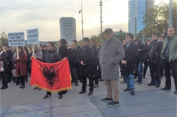 Gjatë tubimit që ka zgjatur një orë, me fjalime me një fjalë në gjuhën shqipe dhe frënge është paraqitur aktivisti Alban Baftiu.