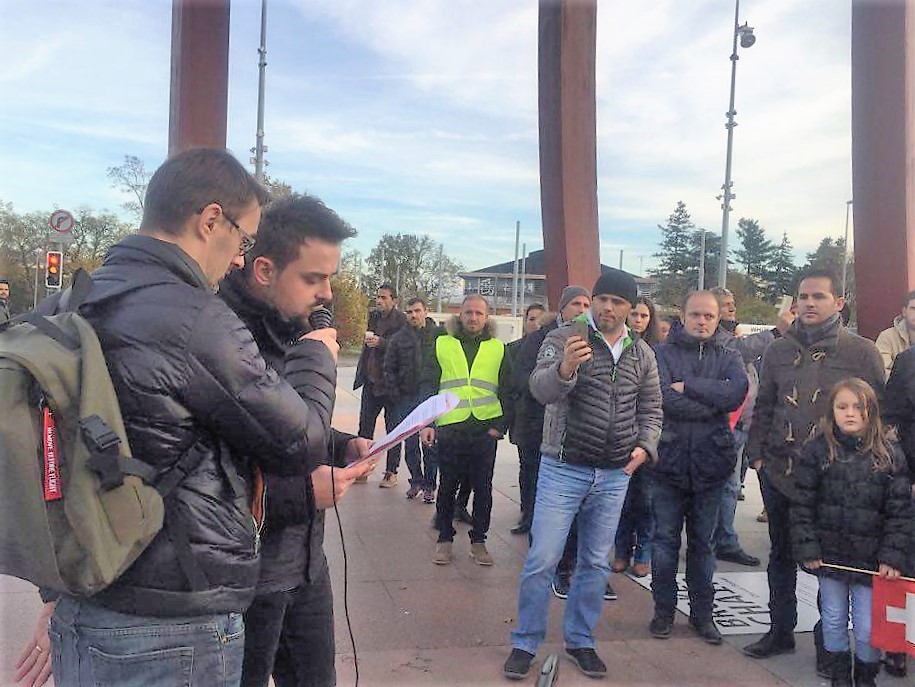 Gjatë tubimit që ka zgjatur një orë, me fjalime me një fjalë në gjuhën shqipe dhe frënge është paraqitur aktivisti Alban Baftiu.